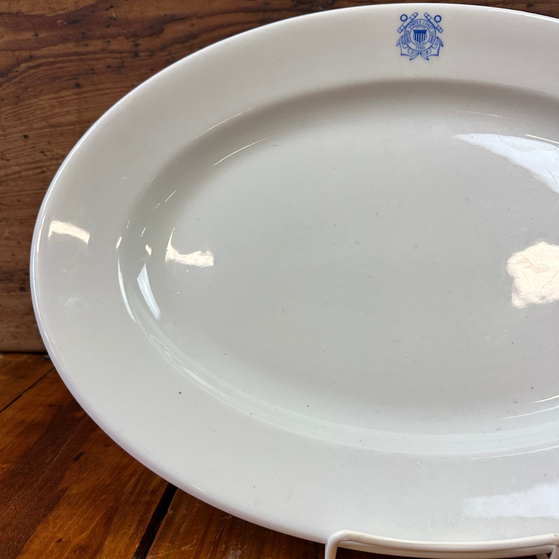 Coast Guard USCG Platter with blue transfer on white.